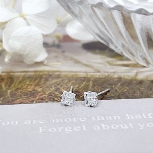 純銀耳環-E50923SZ0050(4mm)(方四爪格紋)