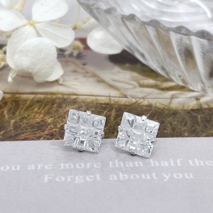 純銀耳環-E50923SZ0090(9mm)(方四爪格紋)