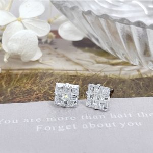 純銀耳環-E50923SZ0085(8mm)(方四爪格紋)