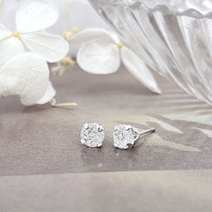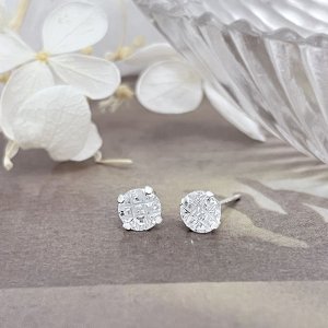 純銀耳環-E509230080(6mm)(圓四爪格紋)