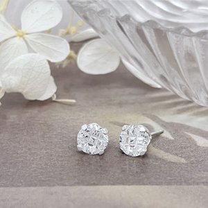 純銀耳環-E509230105(10mm)(圓四爪格紋)