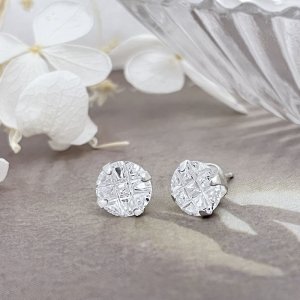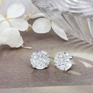 純銀耳環-E509230095(8mm)(圓四爪格紋)